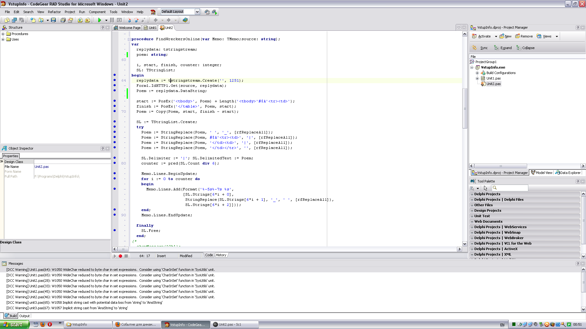 Так что Дельфи 2009 обрабатывает совершенно нормально мой код (предупреждения о CharInSet - не в счет, я их пока не исправлял, и они выше по тексту)