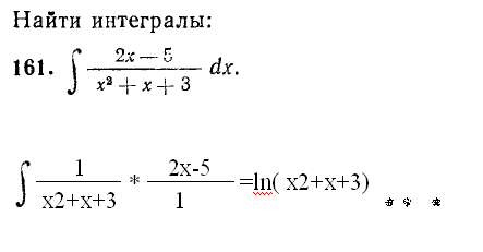 существует два пути: 1) свести интеграл к виду d(f(x))/f(x) (+интеграл, у которого в числителе константа, а знаменатель такой же) 2) разложить дробь на простейшие дальше сам разберешься? -------------------- Все содержимое данного сообщения (кроме цитат) является моим личным скромным мнением и на статус истины в высшей инстанции не претендует.