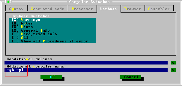 . - 5. Что еще можно сделать для отлова ошибок - это (находясь на любой вкладке в Options->Compiler) добавить в строку Additional Compiler args: