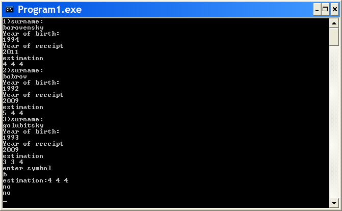 if x=stud[i].srn[1] then writeln ('estimation:', stud[i].oc1,' ', stud[i].oc2,' ', stud[i].oc3)