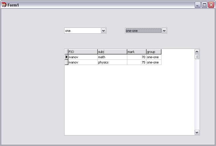 , добавляю на форму еще одну AdoTable3 и DataSource3, связываю AdoTable3 с q2, и DBGrid - с этой самой Adotable3, так, что у меня сразу в гриде появляется вся статистика, независимо от группы: