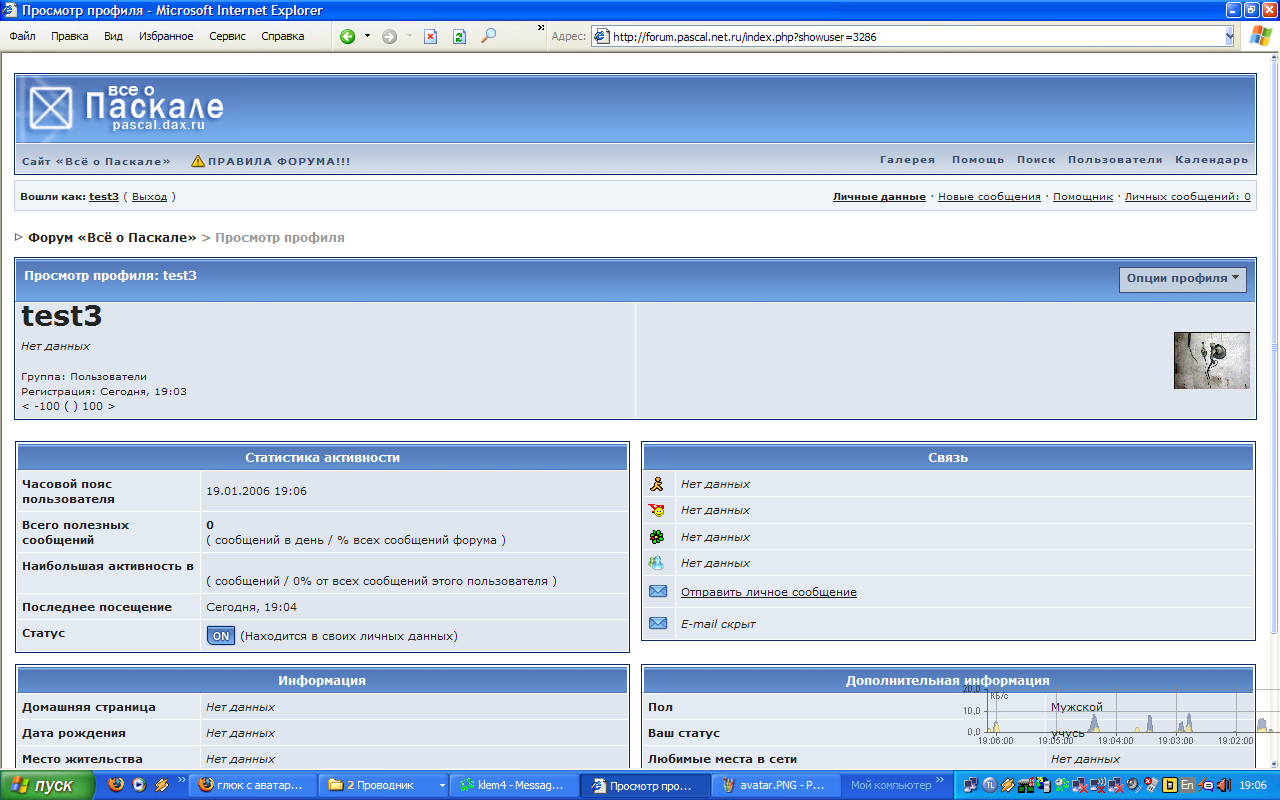 вот ... регистрируюсь... залогиниваюсь.. меняю аватар, задаю размеры. все ок... тестируемый юзер Цитата У меня на локальном форуме (двиг тот де что у нас) нет возможности задания размера... у тебя стит галка "автоматический ресайз аватара" в настройках. -------------------- Помогая друг другу, мы справимся с любыми трудностями!