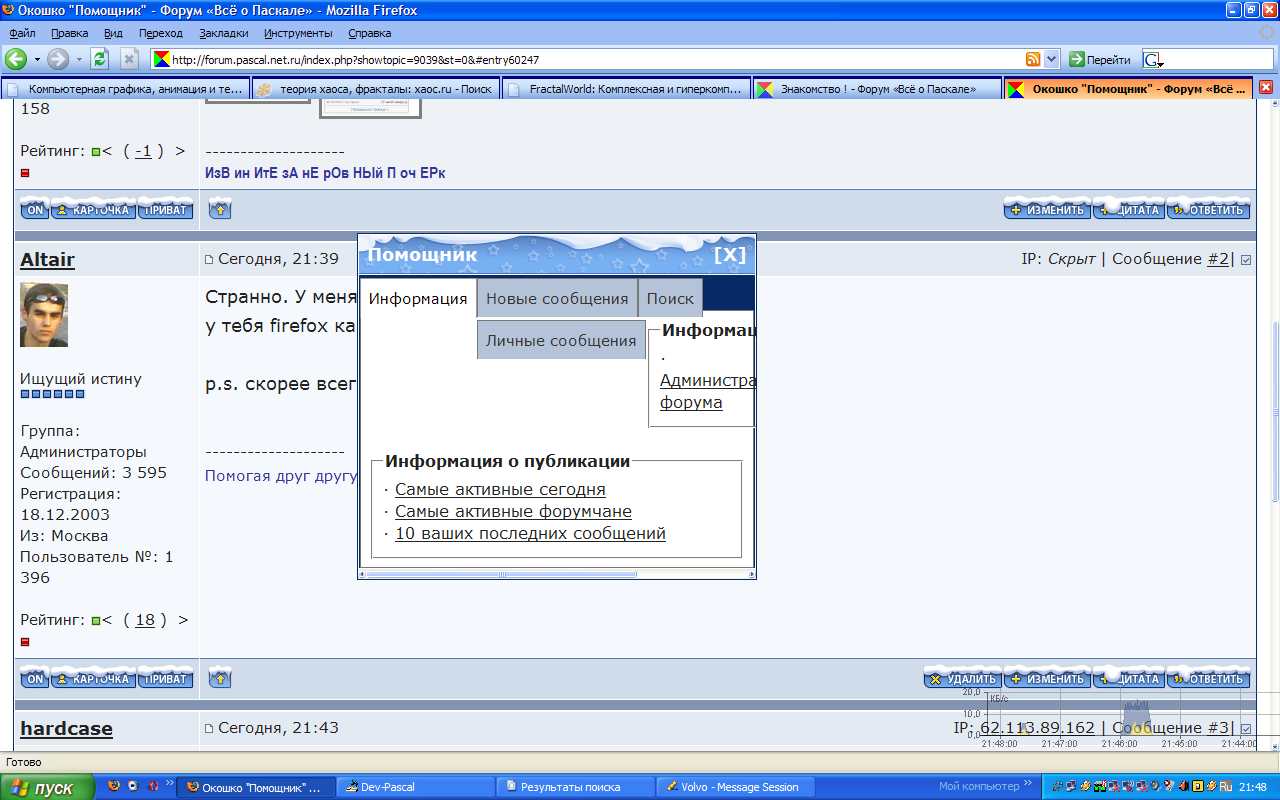 У меня разрешение 1600х1200 (да - я маньяк и Пьяный Эльф), смотрю через Mozilla Firefox и при увеличении масштаба (а это я всегда делаю) "Помощника" перекашивает - ссылки и рамки начинают вылезать за границу.