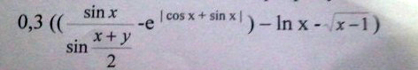 0.3*( (sin(x)/sin((x+y)/2)-exp(abs(.....)))-ln(x)-sqrt(x-1)
