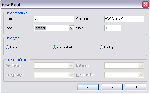 2) щелкаем правой кнопкой мыши, выбираем NewField, и заполняем все необходимые данные (обязательно выставить Calculated, а не то, что предлагается для таблицы по умолчанию !!!): Нажмите для просмотра прикрепленного файла , после чего в ДБГриде должен появиться еще один столбец...