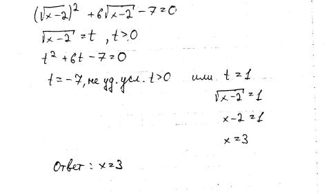 Народ мне нужно решить 3 задачи: 1)(√x-2)²+6√x-2-7=0, x-2 в двух случаях под корнем! 2)√7sinx-2, если cosx=-√3/7 Семерка под корнем и три седьмых тоже под корнем! 3)x²log (x+2)-9log (x+2)=0 У логарифмов в обоих случаях=2 Заранее огромное спасибо!!!