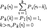 function P(k,n:integer):integer; var i,s:integer; begin if (k=n)or(k=1) then P:=1 else if k>n then P:=0 else begin s:=0; for i:=1 to k do s:=s+P(i,n-k); P:=s end end;