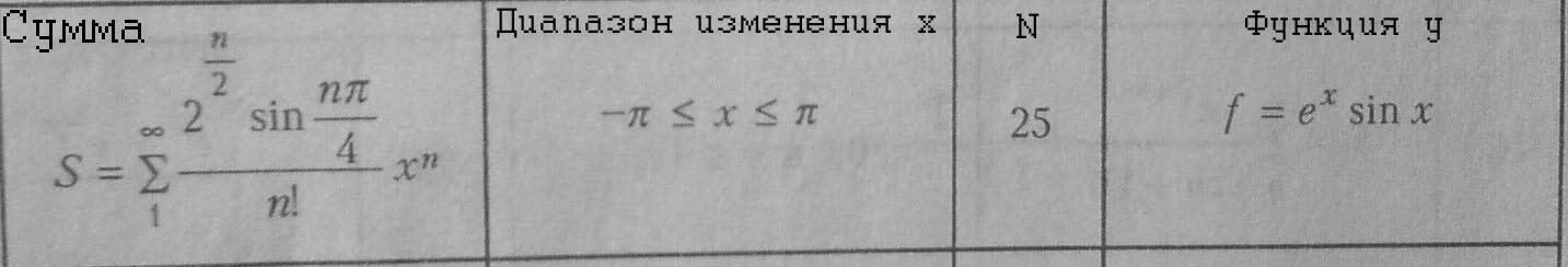 Указания. Результат напечатать в виде таблицы: первый столбец - значение х, второй — вычисленное значение суммы 5, третий 1 значение у. Значение точности е > 0 ввести с клавиатуры.