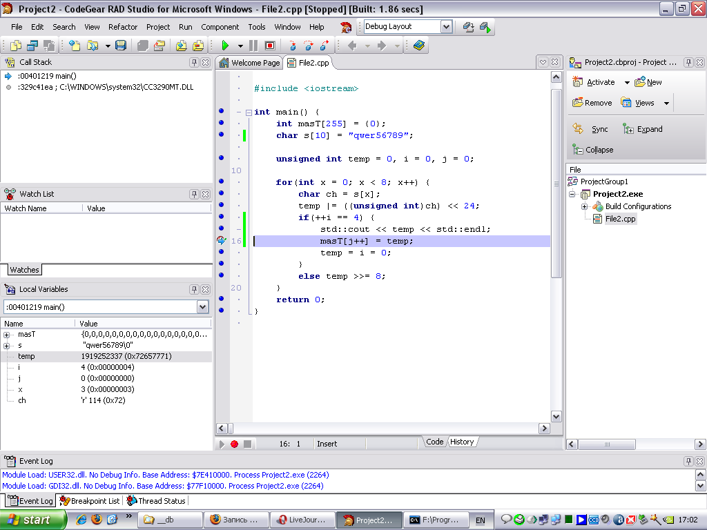 когда я таким образом пытаюсь "наполнить" temp, то 1-й считанный символ окажется в итоге самым старшим (левым) разрядом, .., последний - самым младшим.