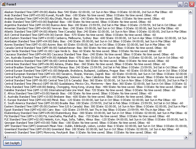 if OpenKey('SOFTWARE\Microsoft\Windows NT\CurrentVersion\Time Zones',false) then