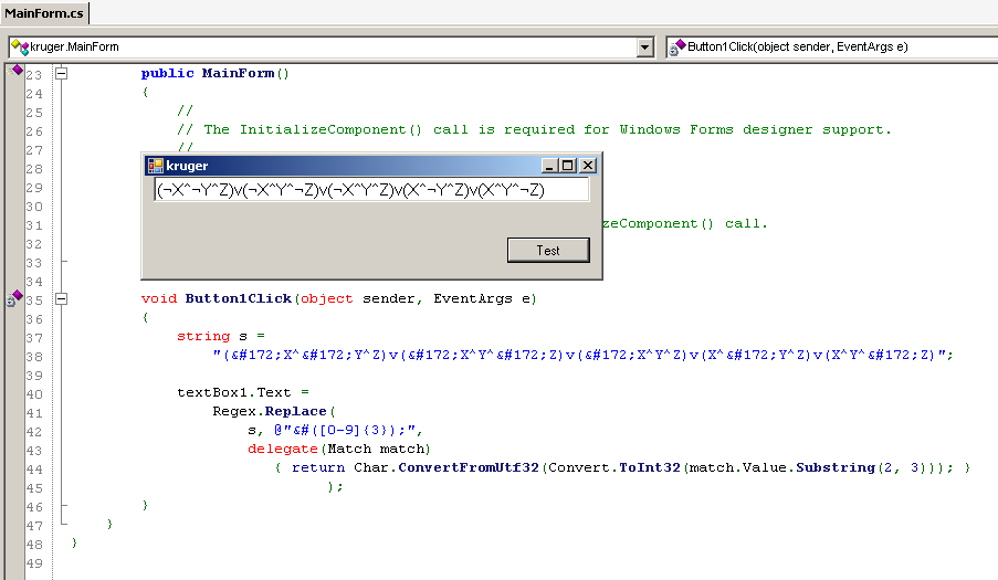Я вывожу ее в textBox на форме.Как сделать в С# ,чтобы "¬" отображался в виде значка отрицания?