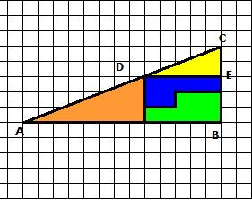 Кто тебе сказал что CD (на моем рисунке) пересекает гипотенузу большого треугольника точно в угле клеточке? smile.gif